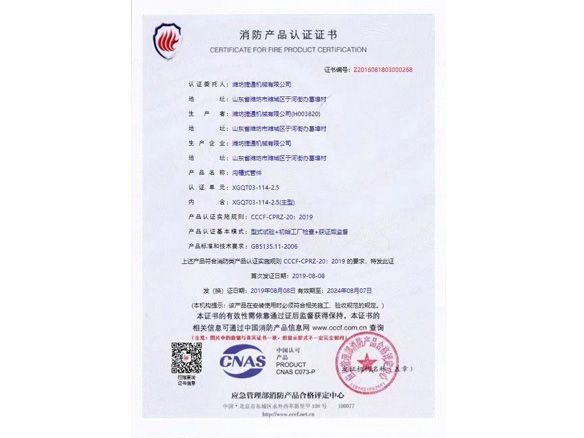 消防產(chǎn)品認(rèn)證證書